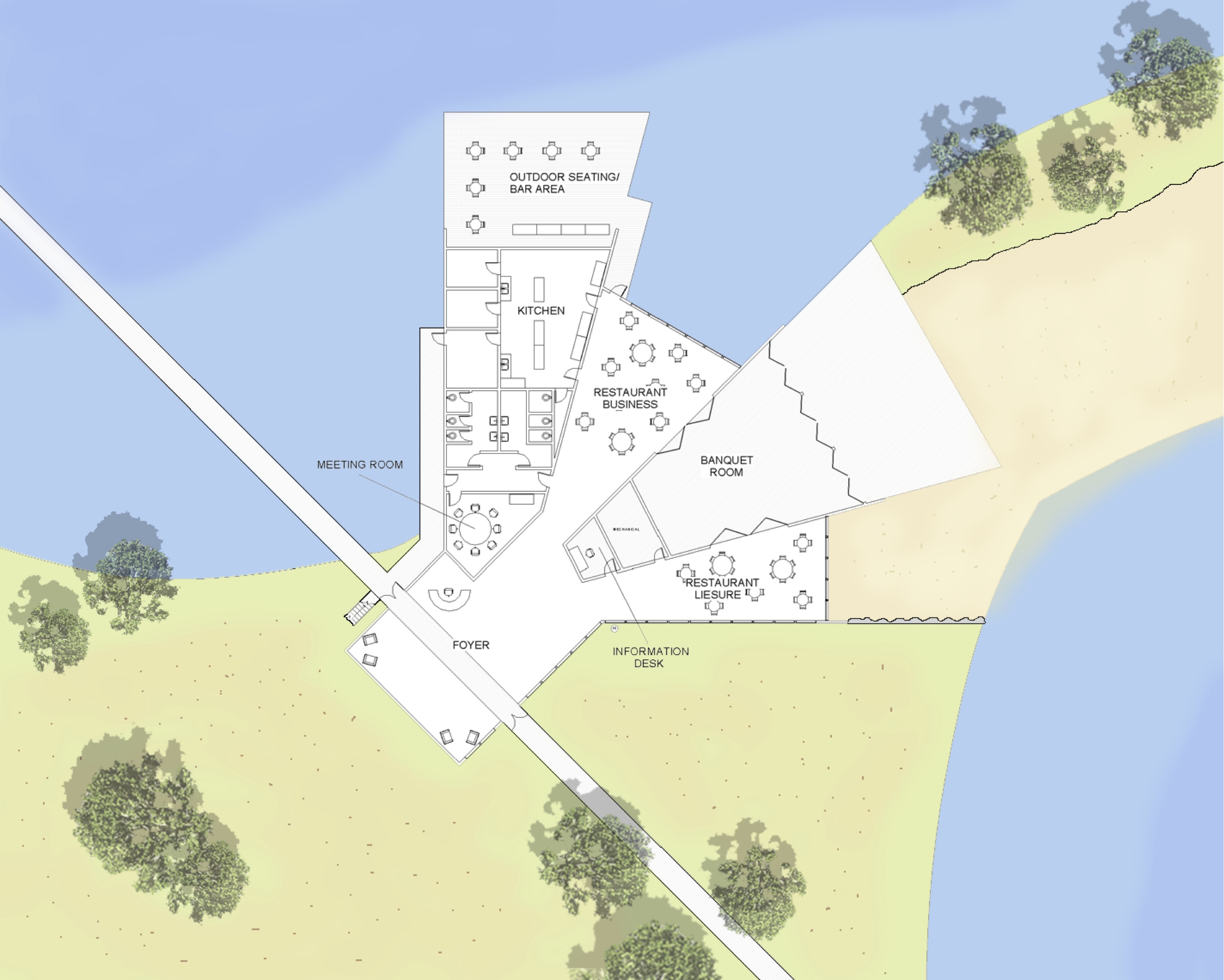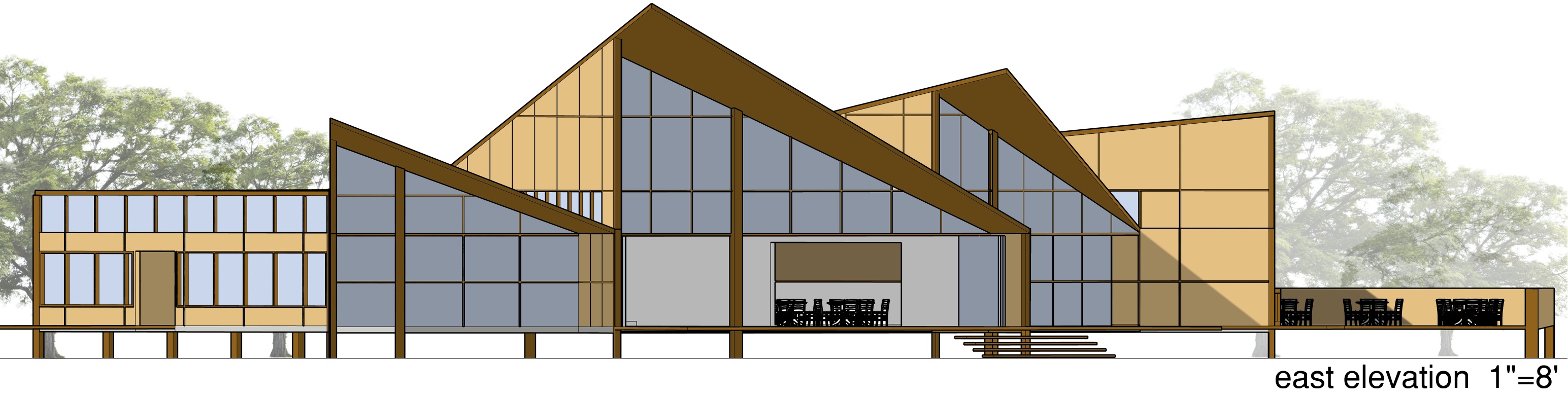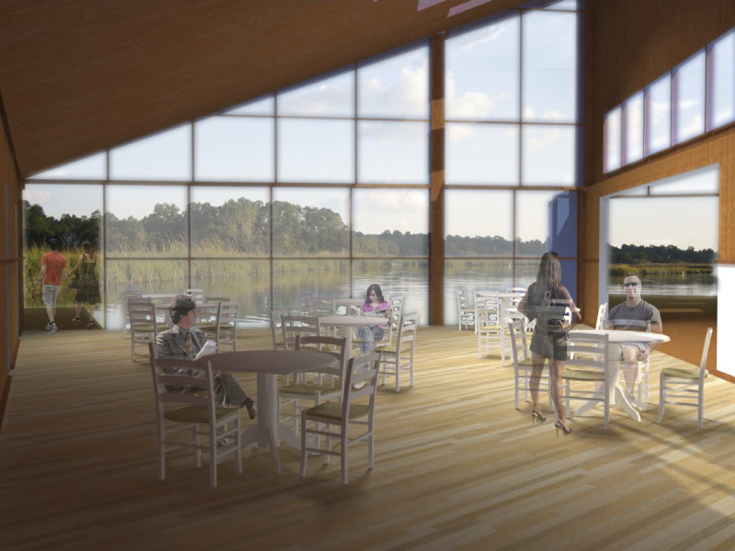 This project was envisioned to promote a healthier relationship with the environment for residents and visitors of Cambridge, Maryland. The sustainable design encourages environmentally-minded lifestyle activities in relation to dining, fitness classes, leisure space, water sports and large event gatherings.