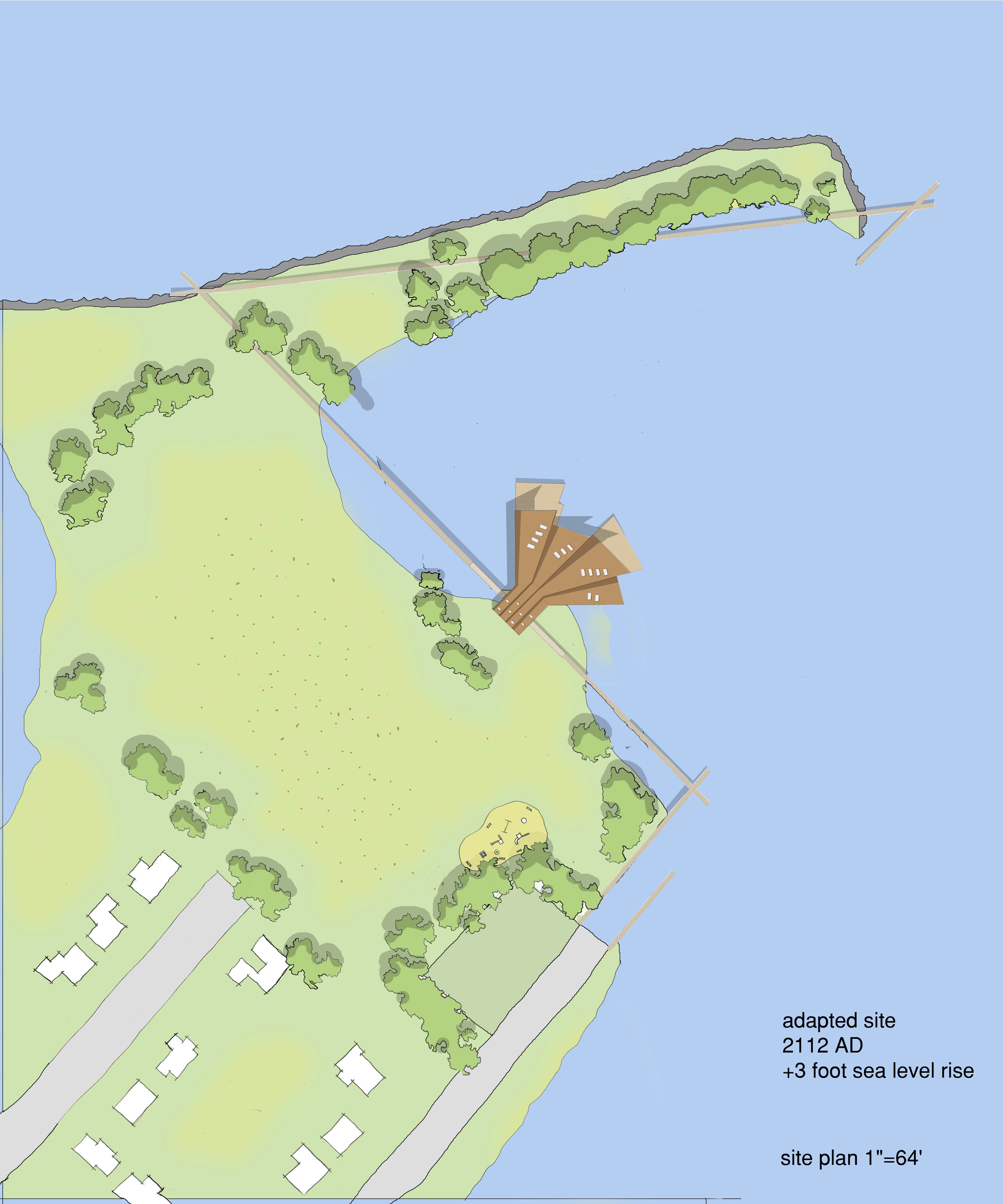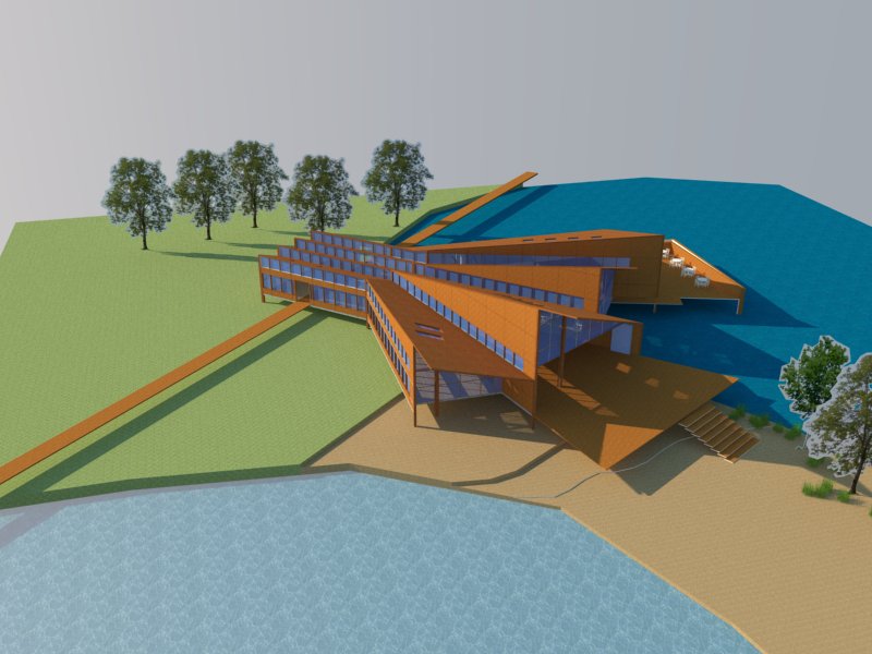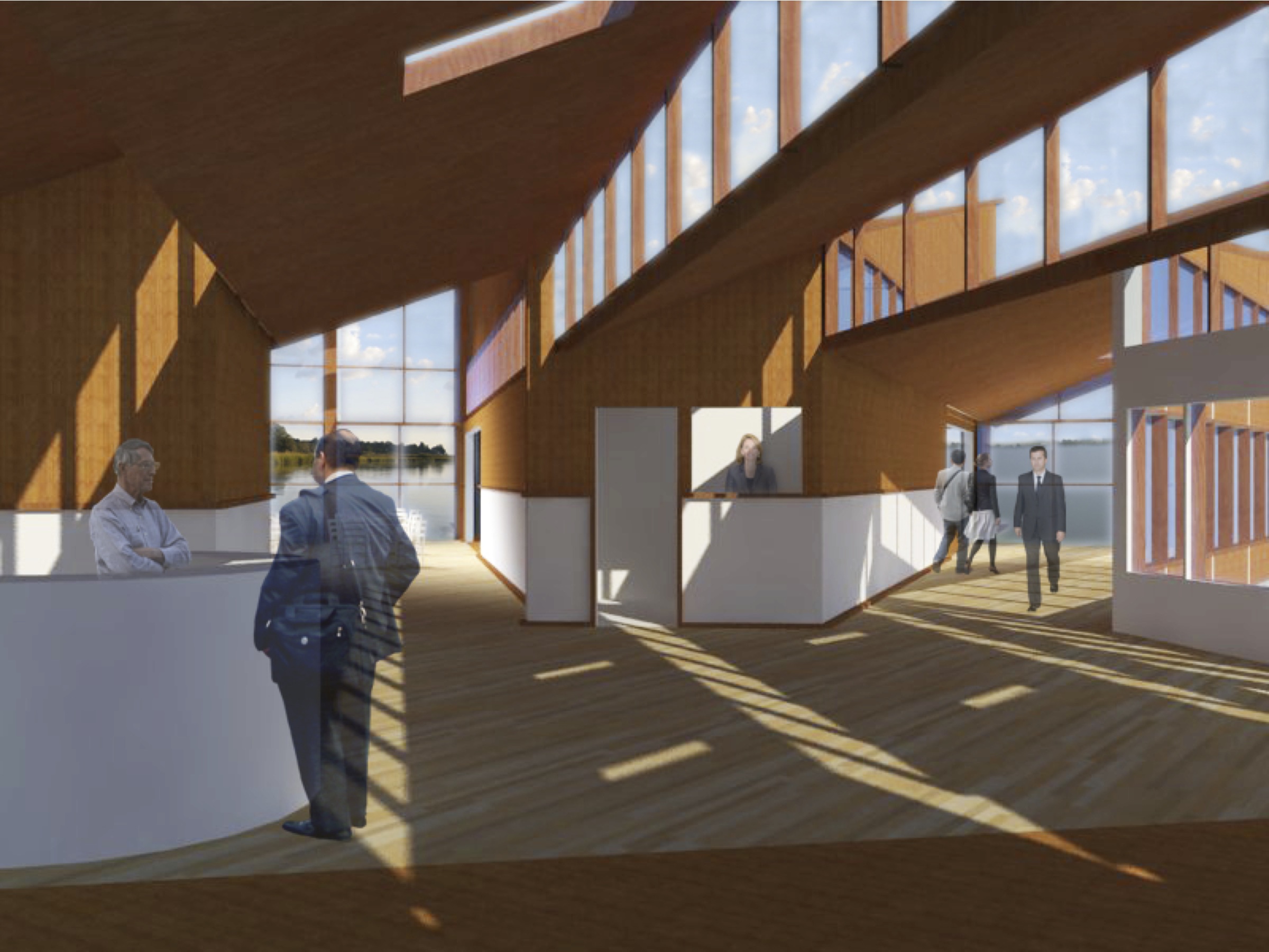 This project was envisioned to promote a healthier relationship with the environment for residents and visitors of Cambridge, Maryland. The sustainable design encourages environmentally-minded lifestyle activities in relation to dining, fitness classes, leisure space, water sports and large event gatherings.