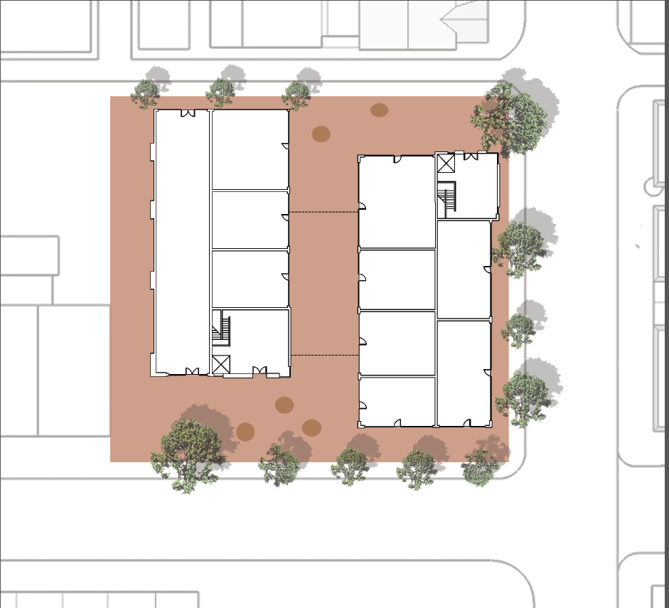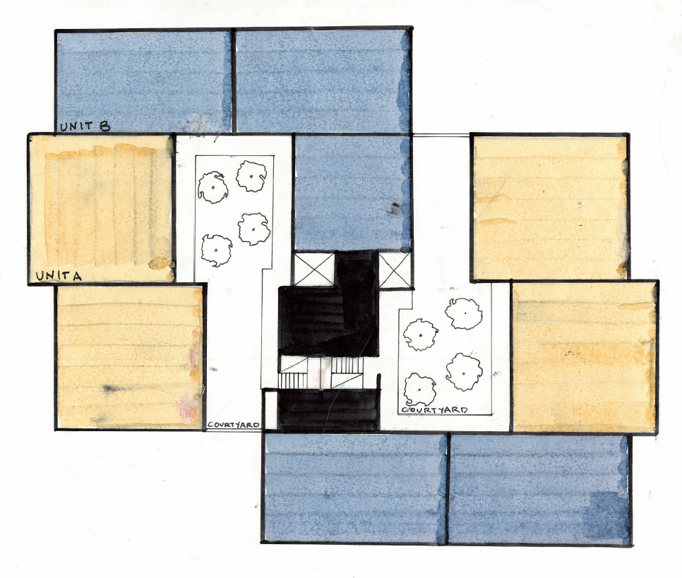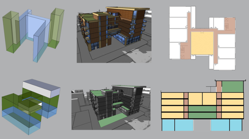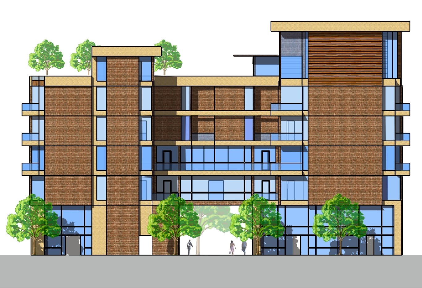 beginning with a 10 unit commercial level flanked by active outdoor space, completed with 28 residential units among 4 floors.